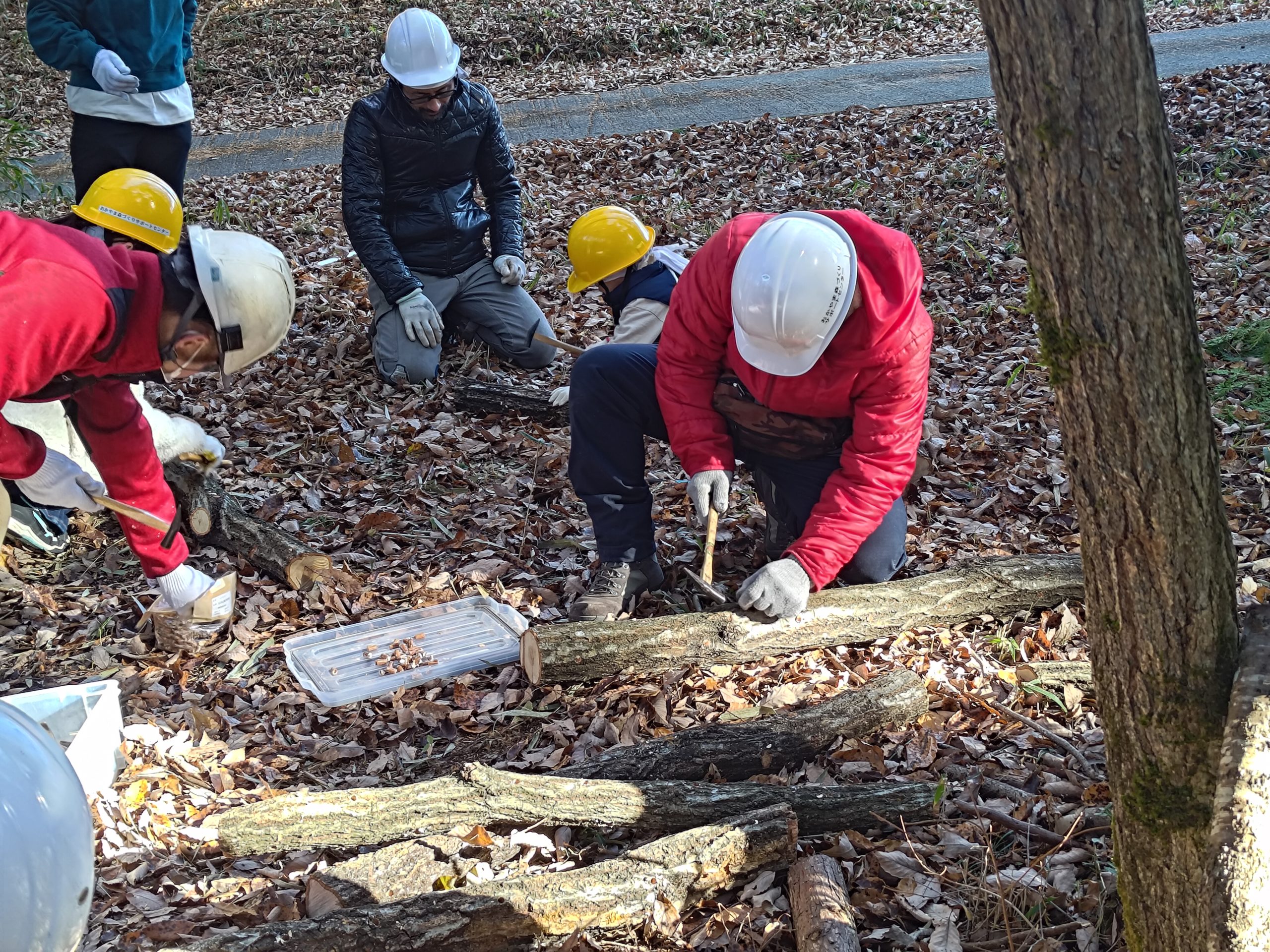 しいたけの植菌もしてます。12月開催の時は収穫もします。
